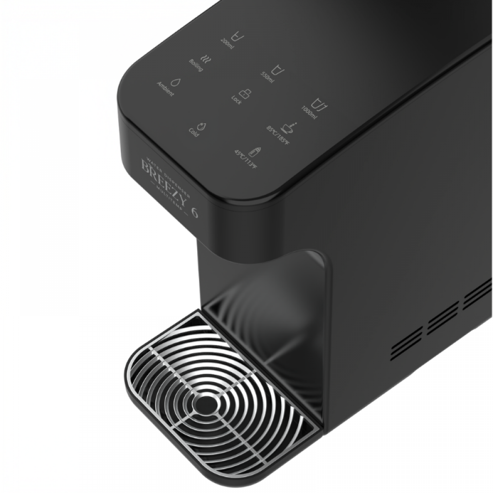 Με τρεις επιλογές θερμοκρασίας – κρύο, ζεστό (45°C, 85°C, 95°C) και θερμοκρασίας δωματίου – ο Breezy 6 MultiTemp εξασφαλίζει ότι το νερό σας είναι πάντα στην ιδανική θερμοκρασία για κάθε χρήση. Η οθόνη αφής προσφέρει δυνατότητα ρύθμισης της θερμοκρασίας και επιλογής δόσης (200ml, 550ml ή 1000ml), ενώ το παιδικό κλείδωμα προσφέρει ασφάλεια για όλη την οικογένεια.