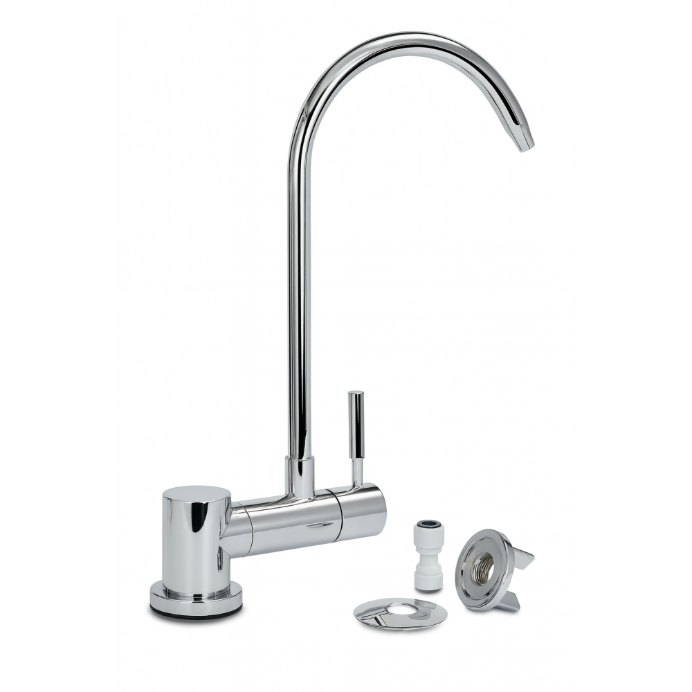 Το ανθεκτικό chrome φινίρισμα εξασφαλίζει μοντέρνο design, μεγάλη διάρκεια ζωής και εύκολο καθαρισμό, ενώ η αποκλειστική παροχή φιλτραρισμένου νερού ή νερού αντίστροφης όσμωσης το καθιστά ιδανικό για συνδυασμό με συστήματα φίλτρανσης και αντίστροφης όσμωσης κάτω πάγκου. Η εγκατάστασή του είναι απλή και γρήγορη.
