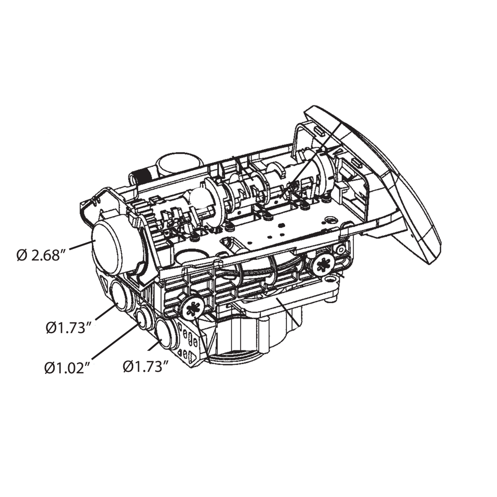 Κατασκευασμένη από Glass-filled Noryl® (NSF listed), προσφέρει αξιοπιστία, ανθεκτικότητα και υψηλή απόδοση. Είναι ιδανική για δεξαμενές έως 21" με εύρος ρητίνης 45–225 L και διαθέτει πιστοποιήσεις WQA Gold Seal, NSF/ANSI 44, CE και ACS.